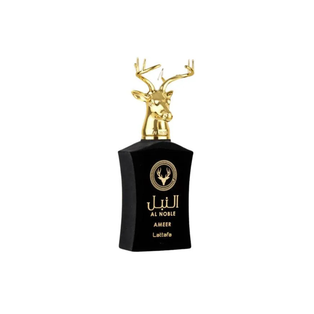 Ameer de Lattafa Perfumes é um perfume Amadeirado Especiado Compartilhável, que combina força, elegância e mistério em uma fragrância marcante e sofisticada. Criado para homens e mulheres que apreciam aromas intensos e refinados, Ameer revela uma harmonia perfeita entre especiarias vibrantes e madeiras nobres.